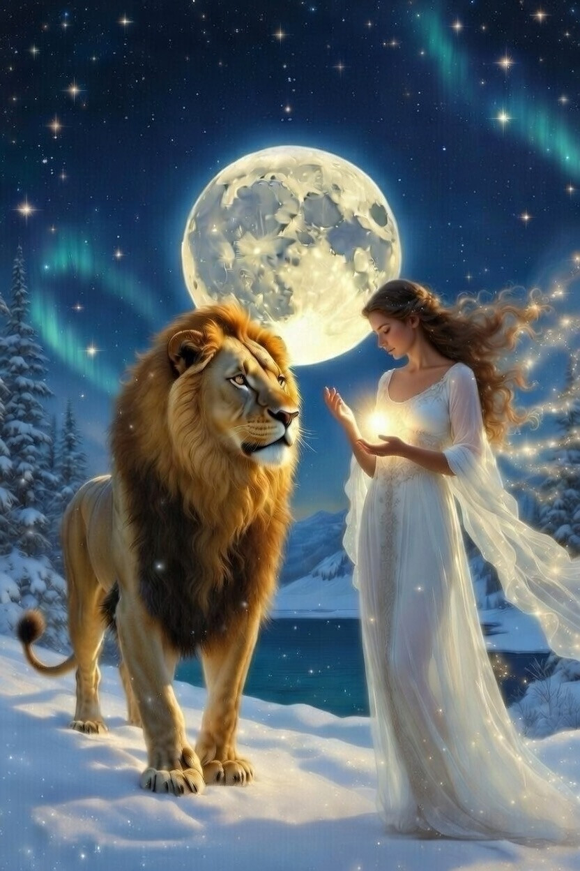 Full Snow Moon in Leo Spell Purifying Winter Energy ~ Be Instilled with Fiery Courage for Bold Personal Illumination ~ Releasing Emotional Limits ~ Igniting Creative Power ~ Building Lasting Inner Strength Through Heart-Centered Change